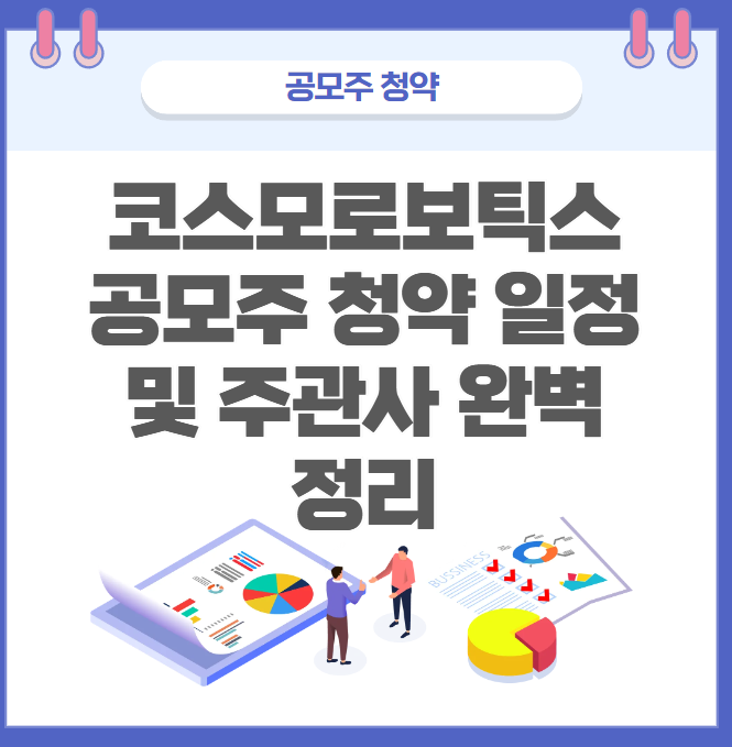 의료 및 재활 웨어러블 로봇 전문 기업인 코스모로보틱스의 공모주 청약이 오늘(27일)부터 시작됩니다. 로봇 테마의 관심이 높은 가운데, 이번 청약은 특히 투자자 보호 장치가 마련되어 있어 많은 주목을 받고 있습니다. 본 포스팅에서는 코스모로보틱스의 청약 일정, 주관사, 그리고 공모가 등 투자 전 반드시 확인해야 할 핵심 정보를 정리해 드립니다.