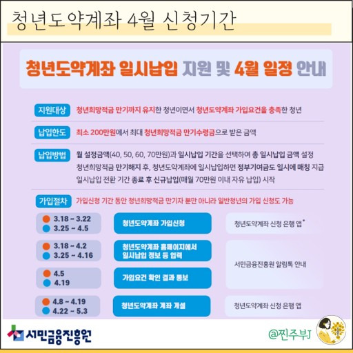 신청은 은행 앱 또는 온라인 청년도약계좌 통합 사이트(ylaccount.kinfa.or.kr)에서 가능하니까 시간 날 때 미리미리 챙겨보는 걸 추천합니다.