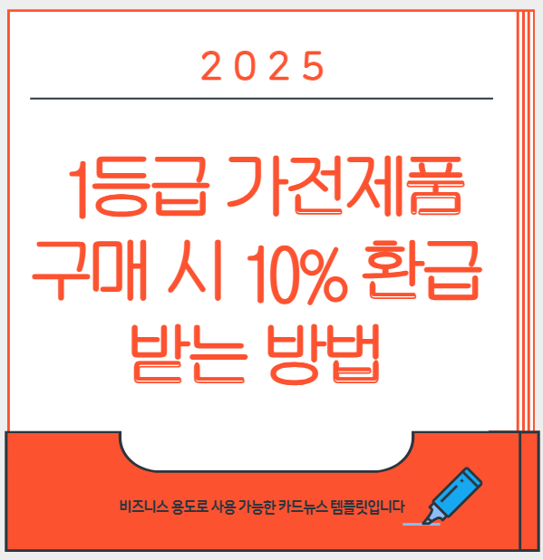 전기요금 아끼고, 최대 30만 원까지 환급받을 수 있는 기회! 2025년 정부가 지원하는 '고효율 가전제품 구매 지원사업'이 돌아왔습니다. 냉장고, 에어컨, 세탁기 등 에너지효율 1등급 가전을 구매하면, 구매금액의 10%를 현금으로 돌려받을 수 있어요 💰