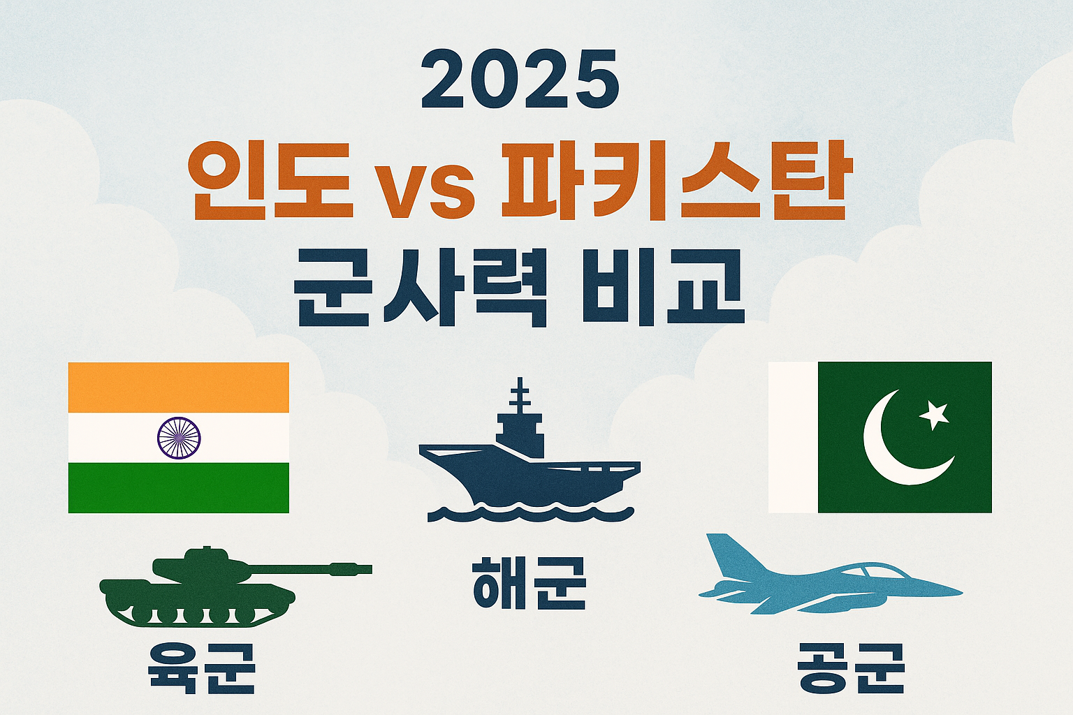 오늘은 2025 인도 파키스탄 군사력을 육군·해군·공군으로 나누어 자세히 비교해 보겠습니다.