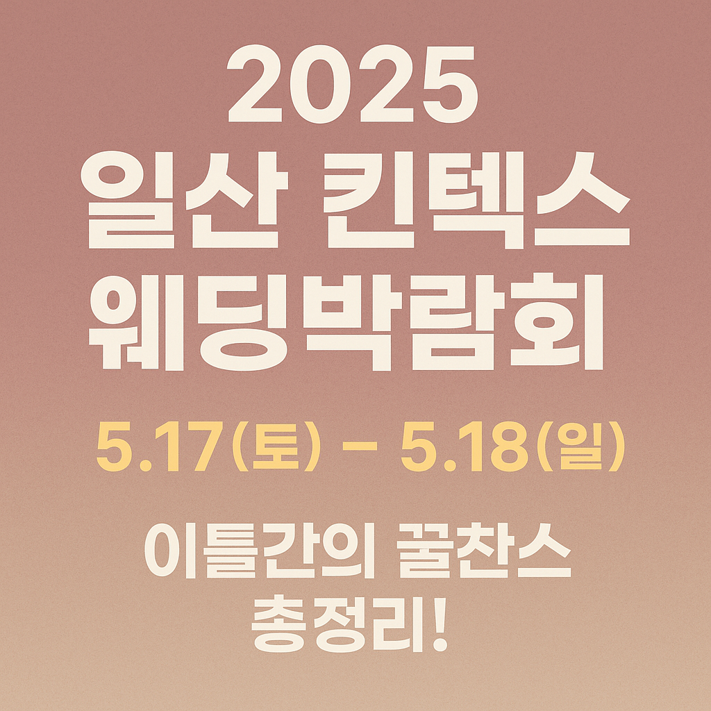 이번 2025 킨텍스 웨딩박람회는 5월 17일(토)부터 5월 18일(일)까지 이틀간 진행됩니다. 장소는 경기도 고양시 킨텍스 제1전시장으로, 수도권 예비 부부들이 접근하기도 아주 좋은 곳이에요. 오전 10시부터 오후 6시까지 운영되니, 시간 넉넉히 잡고 방문하세요!