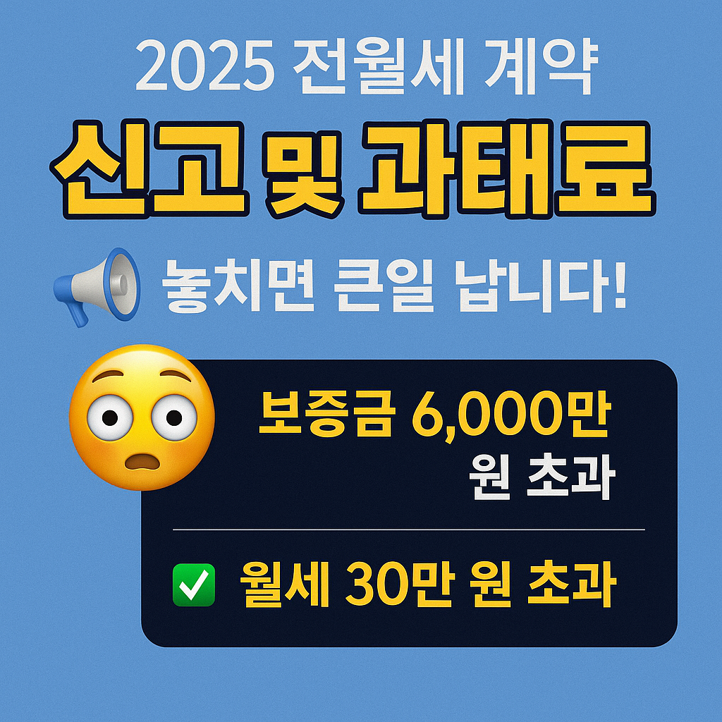 ✔ 2025년 6월 1일부터 과태료 본격 부과 ✔ 보증금 6천만 원 / 월세 30만 원 초과 시 신고 필수 ✔ 온라인/오프라인 모두 가능, 전입신고로도 처리 가능 ✔ 미신고 시 최대 30만 원, 허위 신고는 100만 원